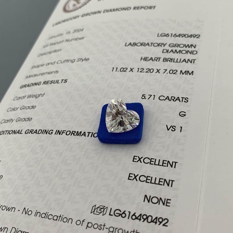 5.71ct Lab Growm เพชรหัวใจตัด CVD G VS1 2EX N IGI